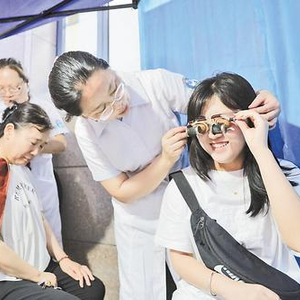 一副眼镜架、两个核桃壳……在传统中医疗法体验区,记者被医生手中的“核桃眼镜”所吸引。“这是核桃明目灸。核桃壳里放上艾草,可以缓解眼疲劳,治疗干眼症和飞蚊症等。”张学英介绍。