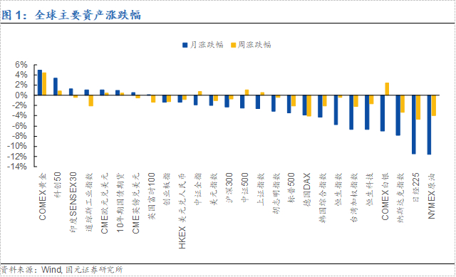 上周全球权益市场普跌,日经225和德国DAX跌幅均超过4%;港股小幅下跌。贵金属大幅反弹,COMEX黄金上涨4.41%,白银上涨2.37%。