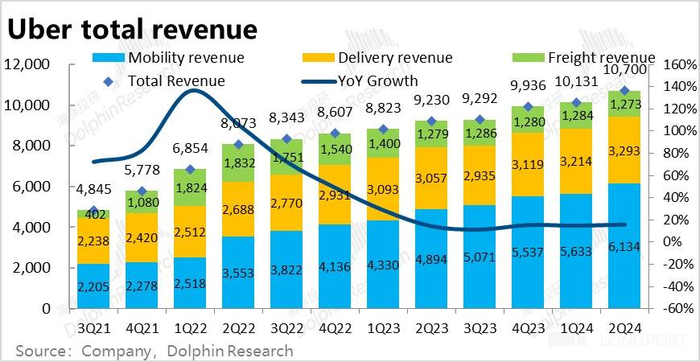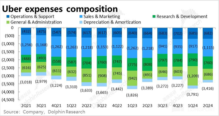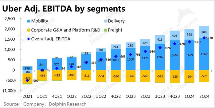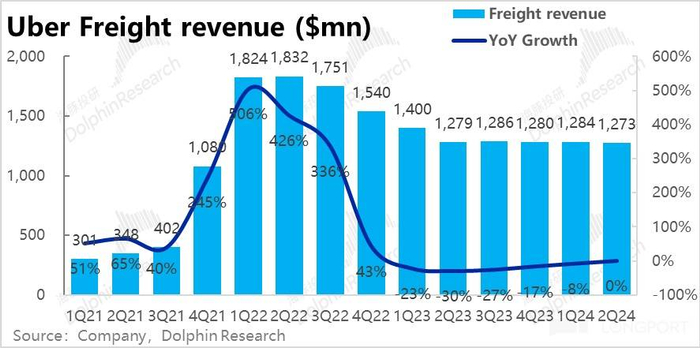 至于 Uber 货运业务,本季度营收约 12.7 亿元,环比继续略为萎缩。虽略好于预期,但对公司的总体业绩和估值几无影响。
