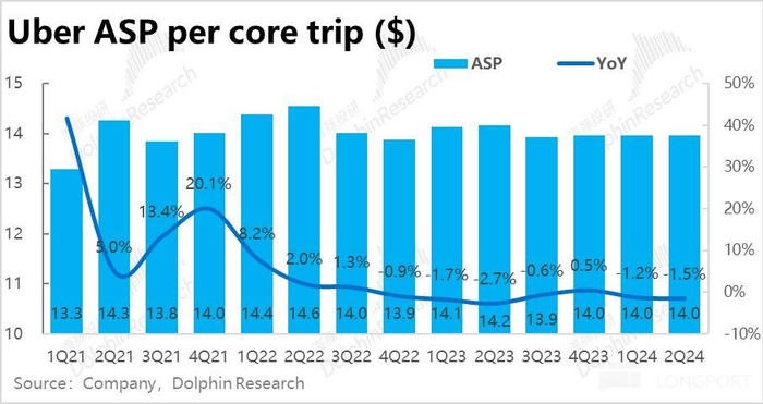 核心驱动因素上,量的角度(外卖 + 打车)的核心业务订单量比预期高约 1.9%同比增速为 21%,环比持平并未降速。价的角度,平均客单价这同比下降了 1.5% 到$14,比预期低 1.5%。
