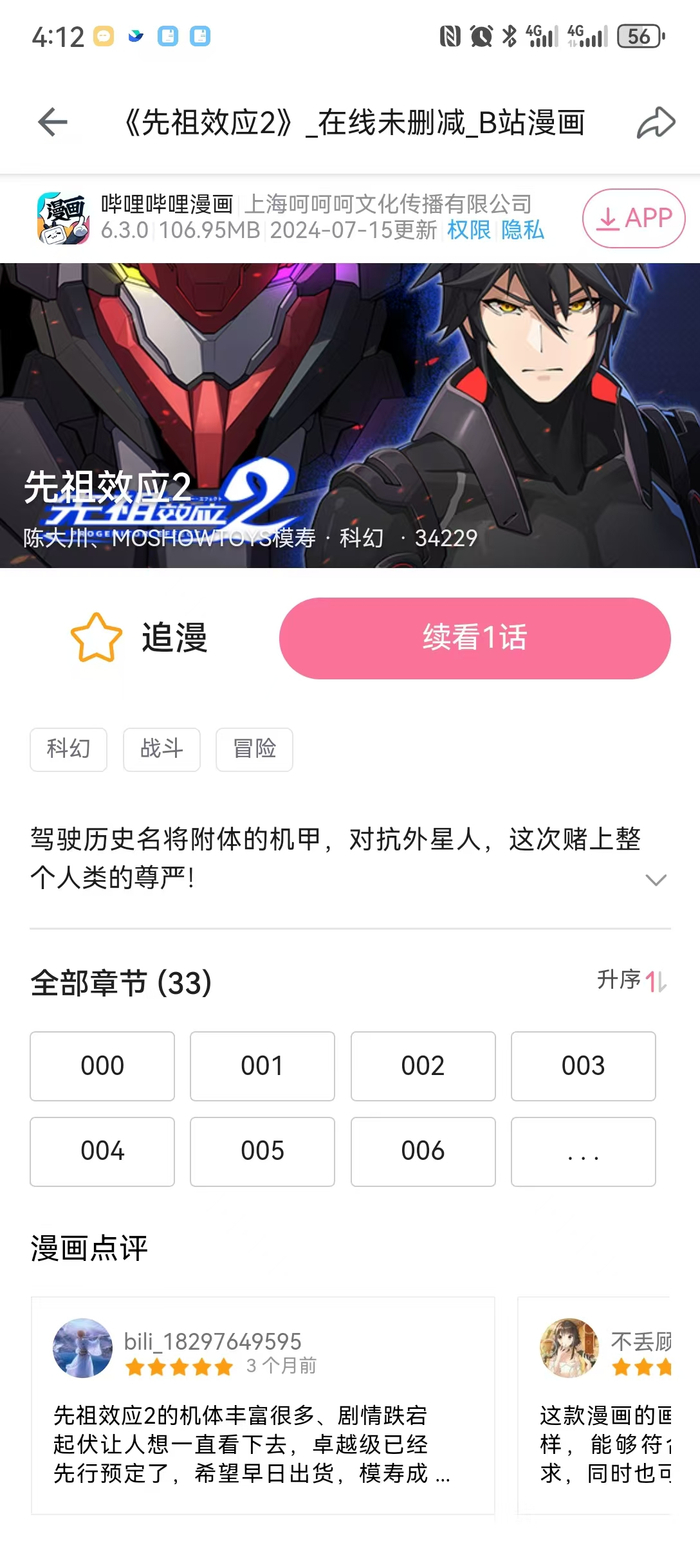 据了解,《先祖效应》是一款连载于哔哩哔哩漫画app上的科幻题材作品,目前已经连载至第2季共147个章节,两季合计浏览量6万余,版权归属于千臣文化旗下的原创IP及文化产品运营品牌模寿(MoshowToys),作者陈大川。