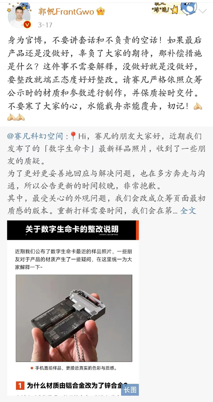 《流浪地球》是近年来国内原创IP少数强势崛起的案例,但《流浪地球2》的周边衍生品网上众筹火爆,仅8天就突破一亿元,但最终乐极生悲,合作方赛凡科幻空间产能不足,闹出一场风波。