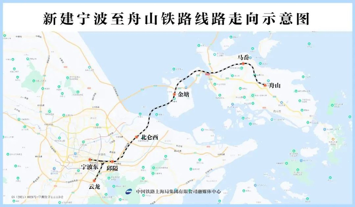 全长76.4公里的甬舟铁路西起宁波东站,经宁波市鄞州区、北仑区,通过新建金塘海底隧道至舟山市金塘岛、新建跨海大桥,至册子岛及舟山本岛,终至定海区白泉镇,设有宁波东、云龙、邱隘、北仑西、金塘、马岙、舟山7个车站,设计时速250公里。项目建成后,将结束舟山群岛不通铁路的历史,长三角唯一不通高铁的地级市舟山市将加入全国铁路网。