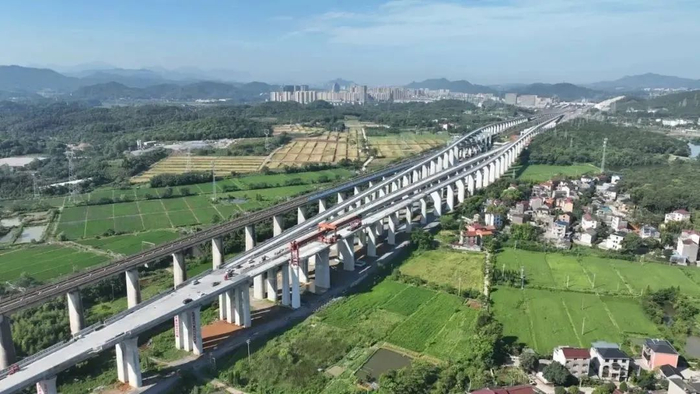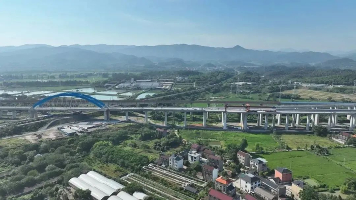 日前,随着一榀32米单线箱梁稳稳落在沪昆高铁上行联络线特大桥安全线1至2号桥墩上,标志着杭衢铁路全线箱梁架设圆满完成。9月,杭衢铁路即将进入全面铺轨阶段。全线预计2025年建成通车。