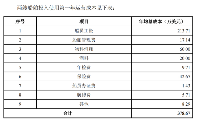 3)两艘船舶修理费合计年均为 93.98 万美元。