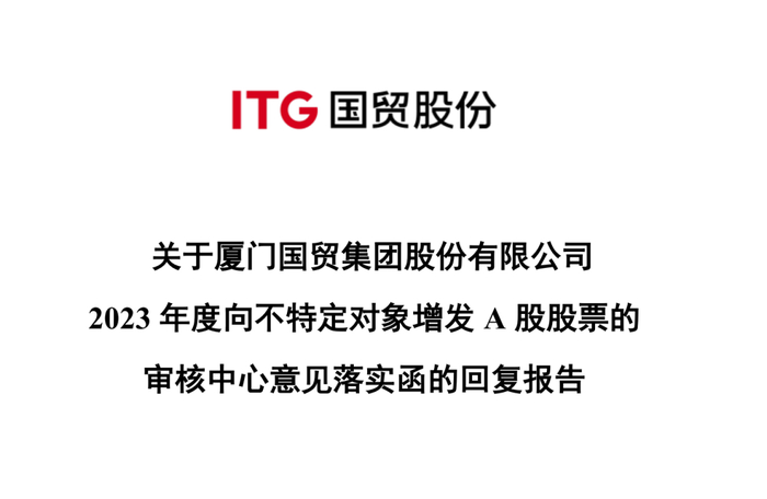 贵所于 2024 年 6 月 24 日出具的上证上审(再融资)〔2024〕161 号《关于厦门国贸集团股份有限公司向不特定对象募集股份的审核中心意见落实函》(以下简称“审核中心意见落实函”)已收悉。厦门国贸集团股份有限公司(以下简称“厦门国贸”、“发行人”或“公司”)与海通证券股份有限公司(以下简称“保荐机构”)、上海通力律师事务所(以下简称“发行人律师”)、容诚会计师事务所(特殊普通合伙)(以下简称“申报会计师”)等相关方已就审核中心意见落实函中提到的问题进行了逐项落实并回复,并对申请文件进行了相应的补充。