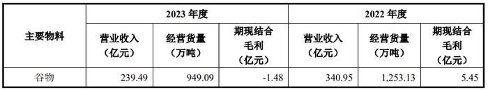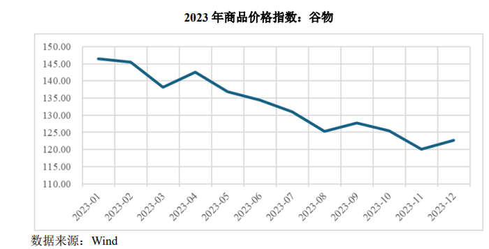 2023 年,巴西、美国和俄罗斯等主要谷物生产国获得丰收,谷物在国内的需求没有明显上升,谷物价格下降幅度较大,公司谷物 2023 年度的月度成交均价亦出现较大幅度下滑,2023 年 12 月份月度成交均价较 1 月份下滑 23.72%;加之下游客户相应减少采购避免存货跌价损失。因此,公司 2023 年度谷物经营货量出现了较大幅度的下滑,农林牧渔的营业收入较去年同期下降较大。