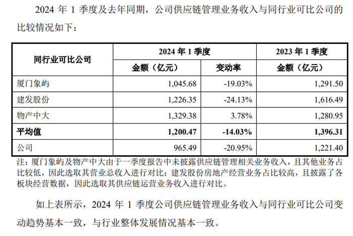 如上表所示,2023年公司供应链管理业务收入与同行业可比公司变动趋势基本一致,与行业整体发展情况基本一致。
