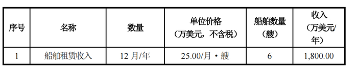 综合考虑公司已经取得的租赁意向性协议以及当前船舶租赁市场价格水平,本项目年均营业收入 1,728.00 万美元(不含税),最高可实现收入 1,800.00 万美元,其构成详见下表: