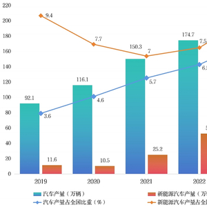 ▎2019-2022年及2023年1-7月安徽汽车及新能源汽车产量(安徽省经济和信息化厅)