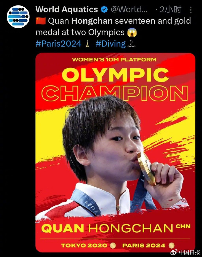 各大媒体和机构第一时间纷纷发帖,祝贺这位年轻的中国小将。