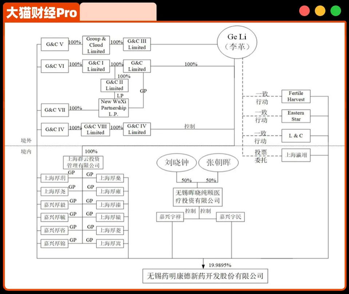 这仨人通过一系列的境内和境外实体,共同掌握药明康德的表决权。