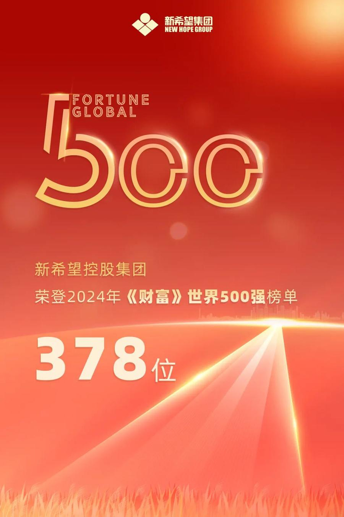 8月5日,2024年《财富》世界500强榜单正式发布,新希望控股集团有限公司(下称“新希望”)以399.88亿美元营收入榜,位列榜单第378名,第4次进入该榜单。