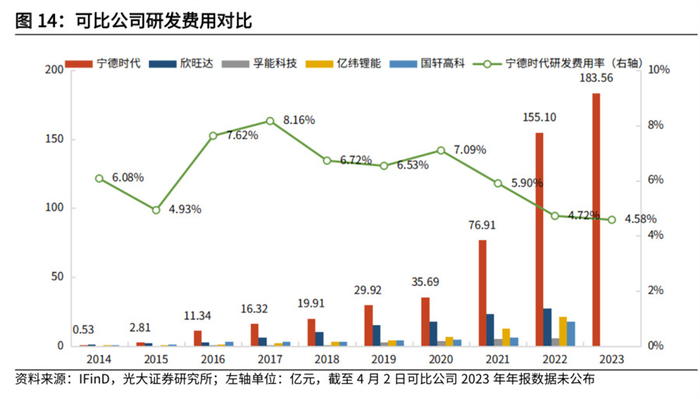图:宁德时代研发投入与可比公司对比