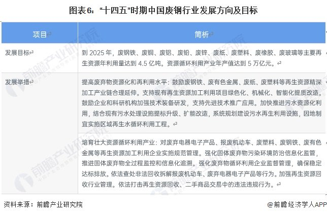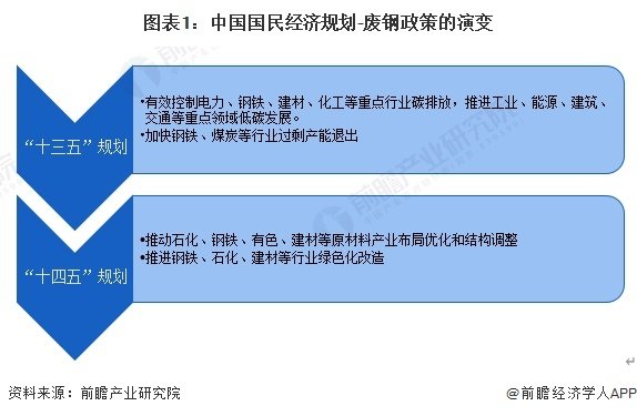 废钢铁是唯一可大量替代铁矿石的铁素原料,是可无限循环利用的绿色再生资源。“十三五”期间,废钢铁产业得以快速发展,废钢铁循环利用水平创历史新高,废钢铁回收、拆解、加工、配送、应用“一体化”开始推进。根据我国国民经济“十三五”规划至“十四五”规划,国家对废钢行业的政策经历了从“低碳发展”“过剩产能退出”到“结构调整”“绿色化改造”的变化。