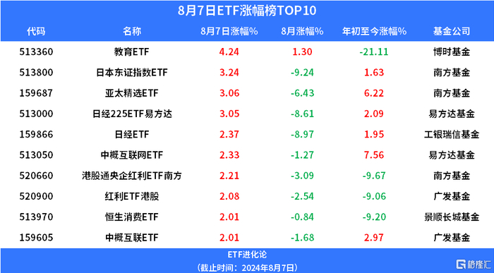 教育ETF、日本东证指数ETF、日经ETF领涨,QDII ETF溢价率回落