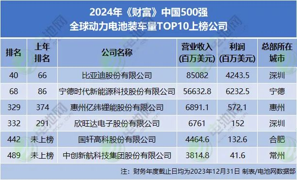 此外,近日,“2024年《财富》中国500强排行榜”发布,宁德时代、比亚迪、亿纬锂能、欣旺达、国轩高科、中创新航悉数上榜。