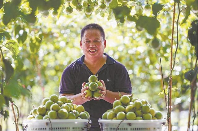 图为近日,武平县象洞镇联坊村果农采摘黄金百香果。