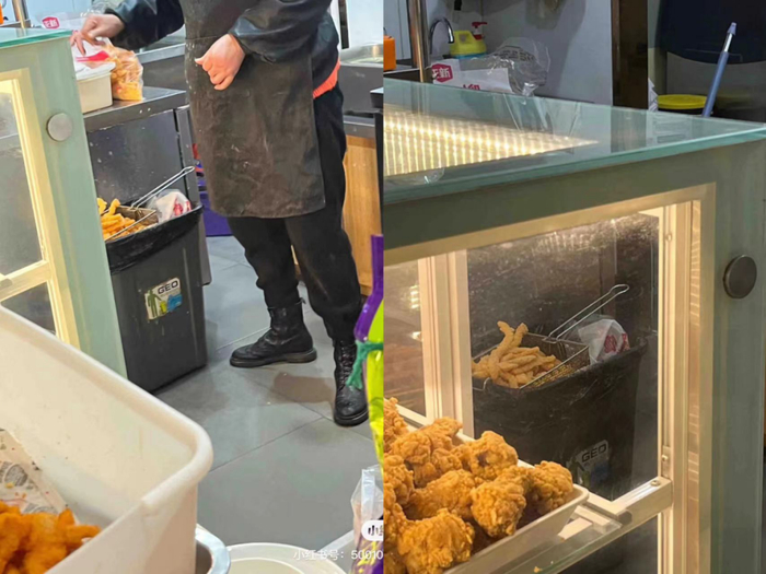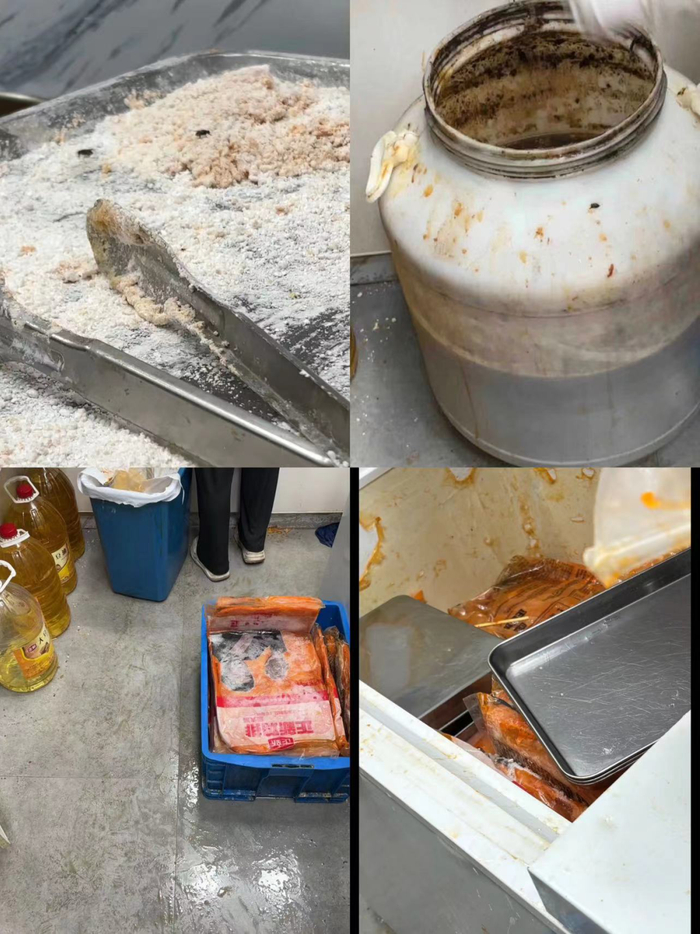 除了烹炸油更换不及时的问题之外,上述发帖网友指出,涉事门店后厨还存在各种乱象,比如鸡排反复解冻——正新鸡排的食材多为冷冻品,使用前需要提前从冷冻库里取出解冻,解冻好但没卖完的鸡排会在门店打烊时重新放入冰柜;提前炸好却没卖出去的鸡排也会在打烊时放入冰柜;装鸡排的勺子随意放在废油桶上;店员仅在裹粉这一操作中才会佩戴口罩和手套等。