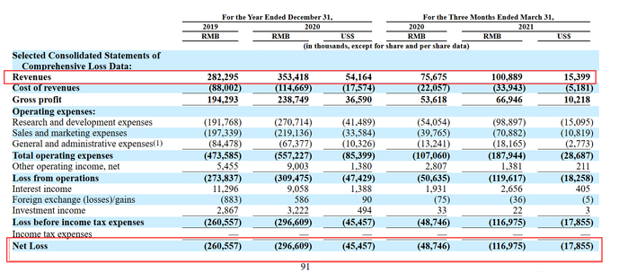 招股书显示,2019年-2021年前3月,群核科技的收入分别为2.8亿元、3.5亿元及10亿元;对应净利润分别为-2.6亿元、-2.96亿元、-11.69亿元。