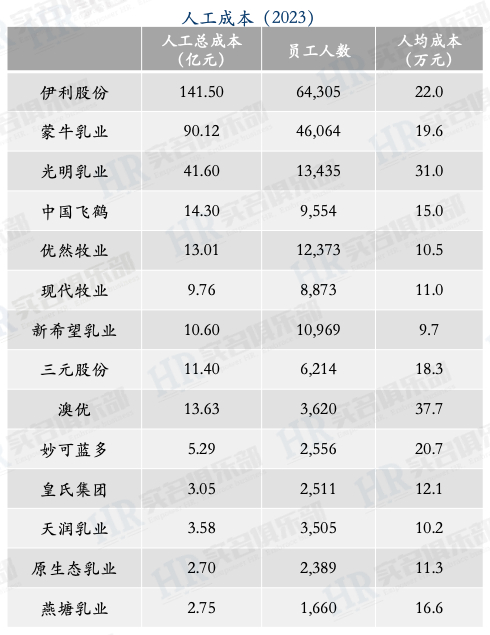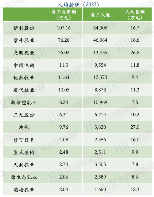 伊利、蒙牛、光明等14家乳企2023年薪酬、人效大曝光,减员最多、人均薪酬27万元是谁家?
