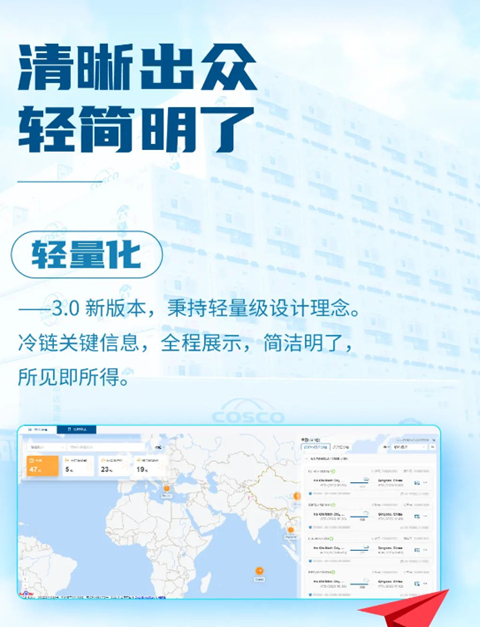 目前,MY REEFER已新上线的3.0版本,秉持轻量设计理念,平台为客户提供冷链关键信息全程展示,并提供“跟单助手”功能,实现跨航线、多航次的指定跟踪,为追踪大型项目冷链情况更添助力。