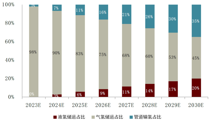 背景三:我们预测,到2030年液氢储运占比有望达到20%