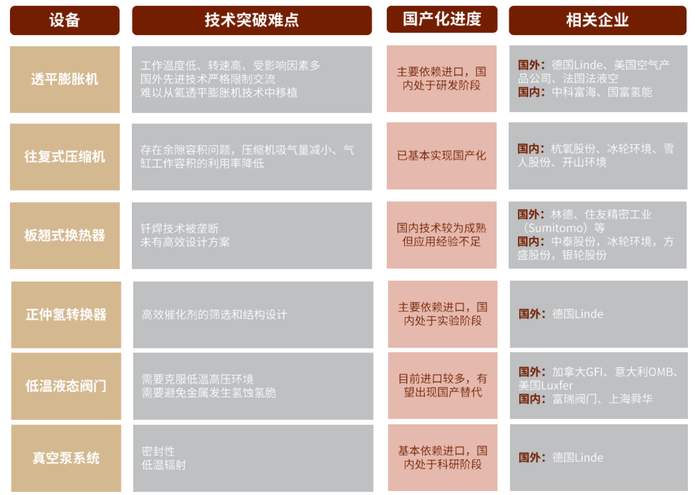 图表:液氢储运的主要设备和国产化进程