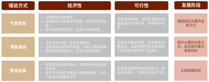 图表:三种氢储运方式的综合对比