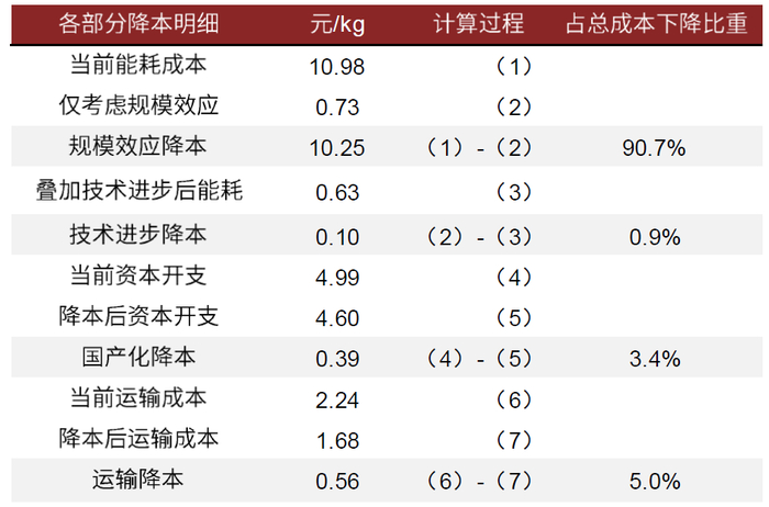 图表:各降本环节对总成本降低的贡献(2023年)