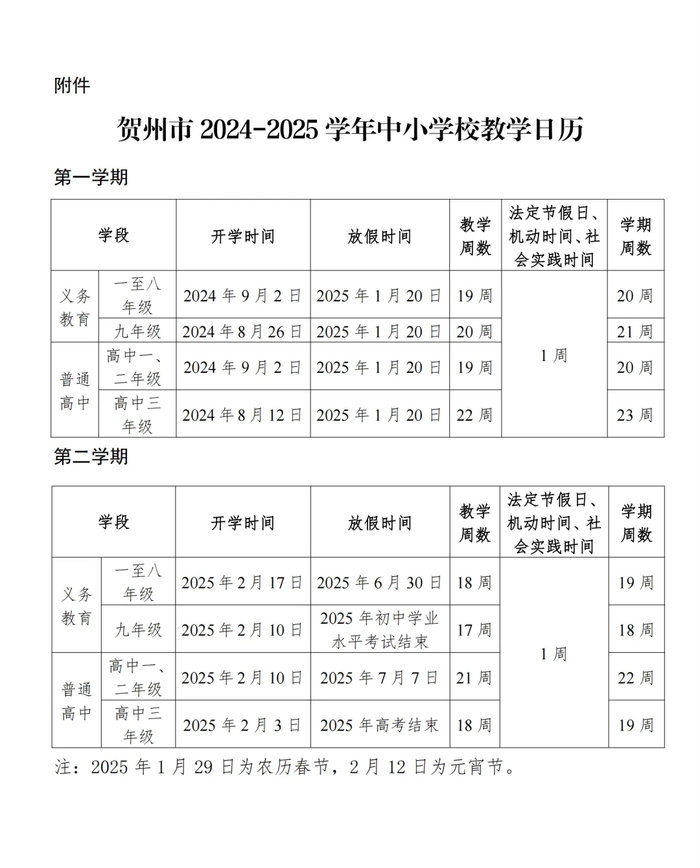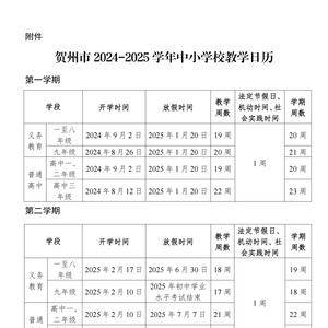 贺州市2024-2025学年中小学校寒暑假时间出炉