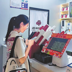 8月7日,顾客点好单等待奶茶制作完成。(全媒体记者史传芝摄)
