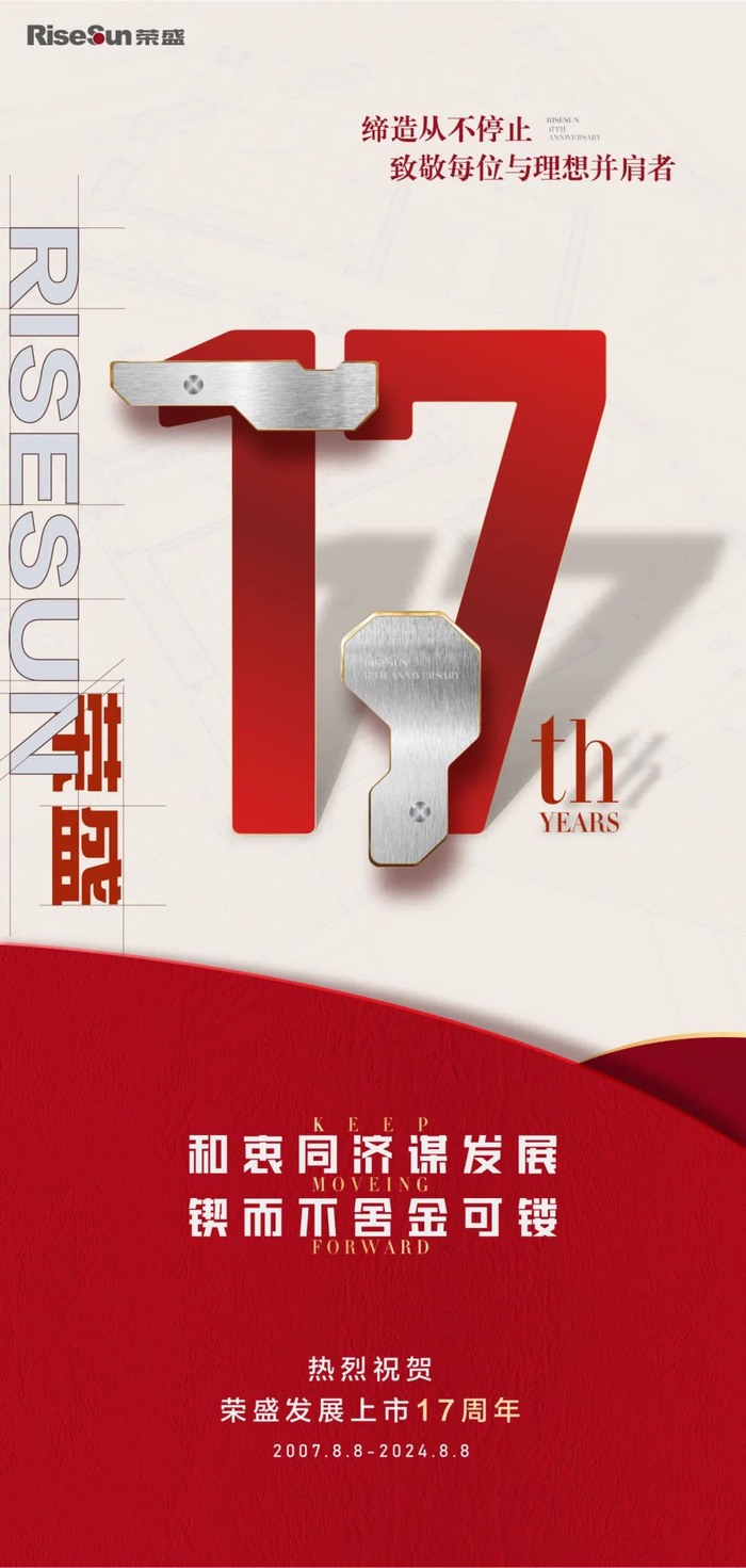 和衷同济谋发展,锲而不舍金可镂。在上市十七周年之际,我们不忘初心,团结一心,携手共进,共创荣盛发展更加美好的未来!
