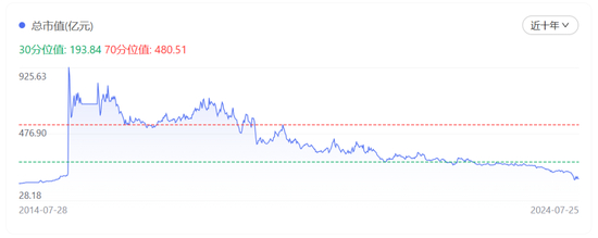同花顺数据显示,2015年6月16日广汇汽车上市前夕,迎来市值最高点1041.21亿元,上市当天市值达到846.11亿元。但在上市之后,广汇汽车的市值不断下降。截至2024年7月18日,广汇汽车的市值降至64.66亿元,市值缩水约92.36%。