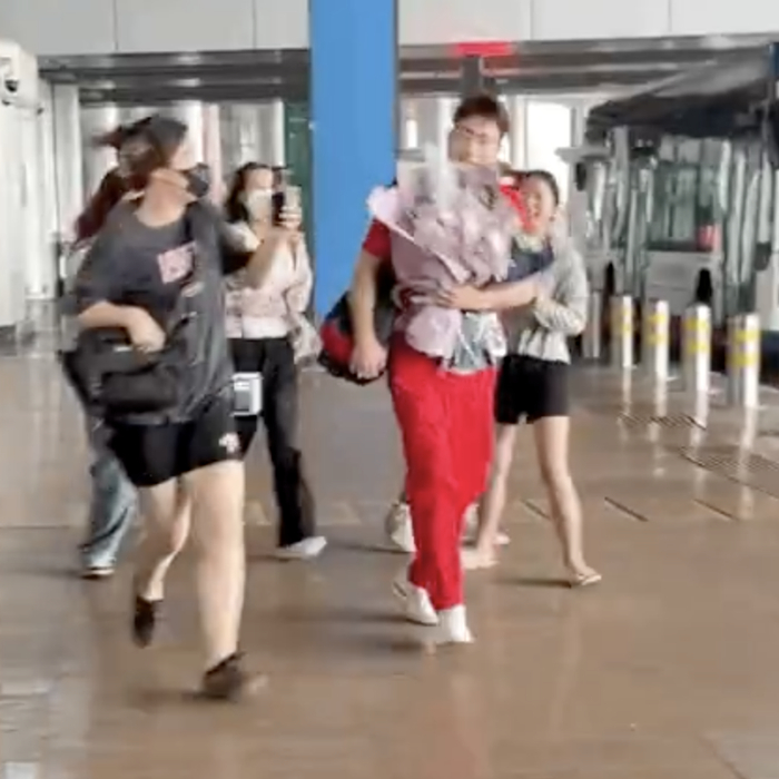 视频显示,王昶的粉丝在机场追着他跑,王昶捧花快速奔跑,但还是很多人手持拍摄设备拍照。