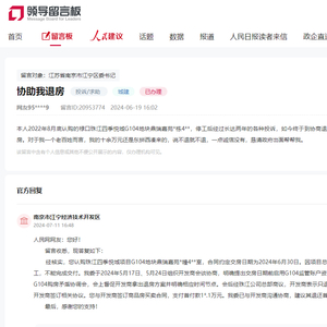 记者在人民网领导留言板上看到,南京市江宁经济技术开发区于7月11日回复网友对珠江四季悦城项目的投诉时称:“因项目总包方苏中建设公司内部资金链断裂,导致项目长期停工,不能完成交付。我委于今年5月17日、5月24日组织开发商会谈协商,明确提出于交房日期前启用G104监管账户资金启动退房流程。6月4日,我委再次召开珠江G104购房矛盾协调会,会上督促开发商拿出退房方案并明确相应时间节点。会后经珠江公司总部商议,开发商表示只退房款,无按揭贷款利息补偿,目前已有大部分业主与开发商签订相关协议。您与开发商签订商品房买卖合同,支付首付款14.1万元。我委已与开发商沟通协商,建议其退还首付款。后续我委将跟踪关注退款进展”。