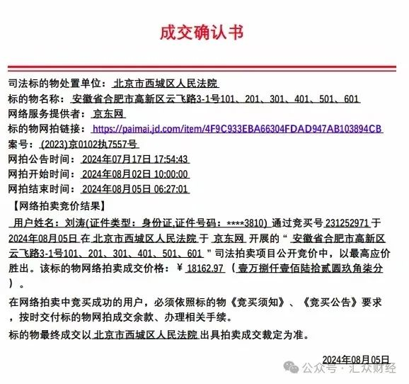 据京东资产交易平台信息,8月5日,北京市西城区人民法院变卖参考价1.3亿元的厂房。公告发出后,该厂房吸引了140人报名,21669人围观。该厂房最终成交价为1.8万元,成交确认书显示,这位幸运的“捡漏”者是一位名叫刘涛的自然人。