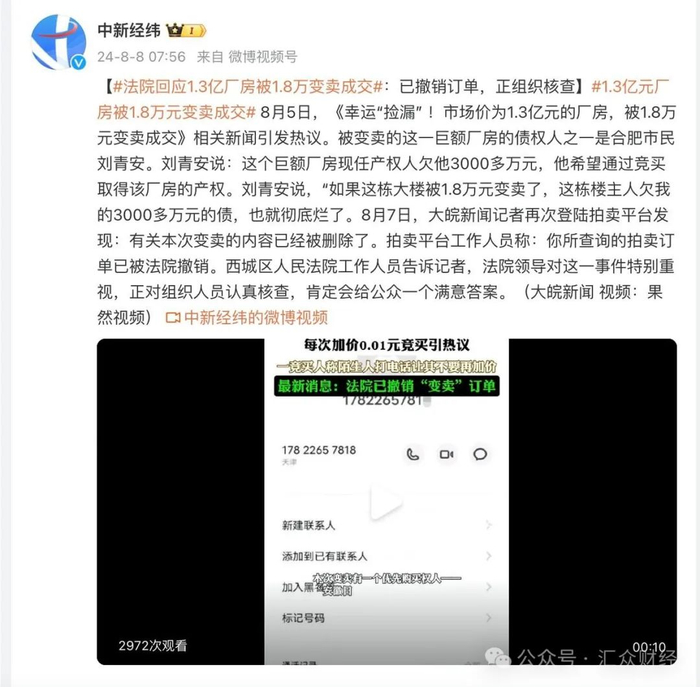 1.3亿厂房被1.8万变卖成交,法院回应:已撤销订单,正组织核查