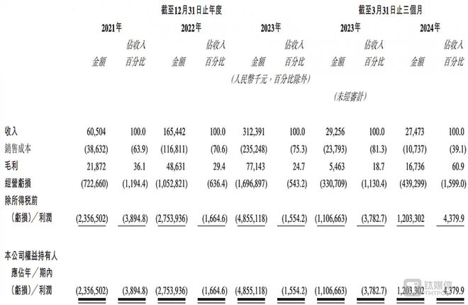 根据最新招股书披露信息显示,2021年-2023年,黑芝麻智能的营收分别为6050万、1.65亿、3.12亿元。