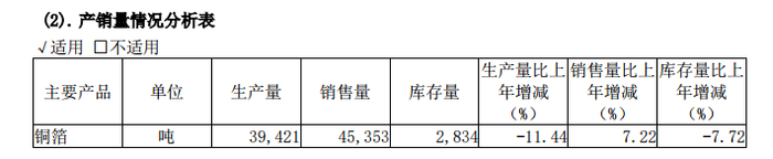 从诺德股份主要产品的产销量情况来看,其2023年生产铜箔39421吨,产量同比下降11.44%;销量为45353吨,销量同比增加7.22%。