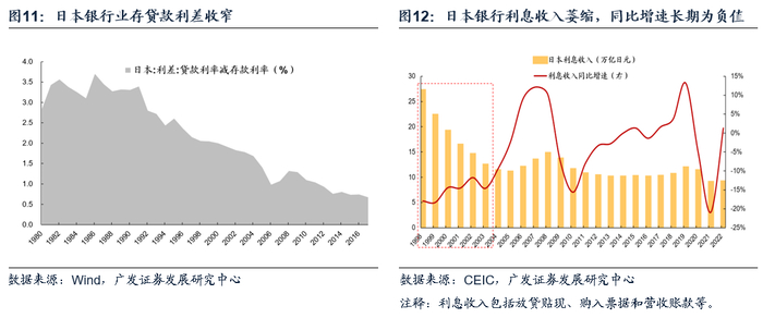 1990年代日本的债务收缩阶段,银行传统利息收入受到明显挤压。