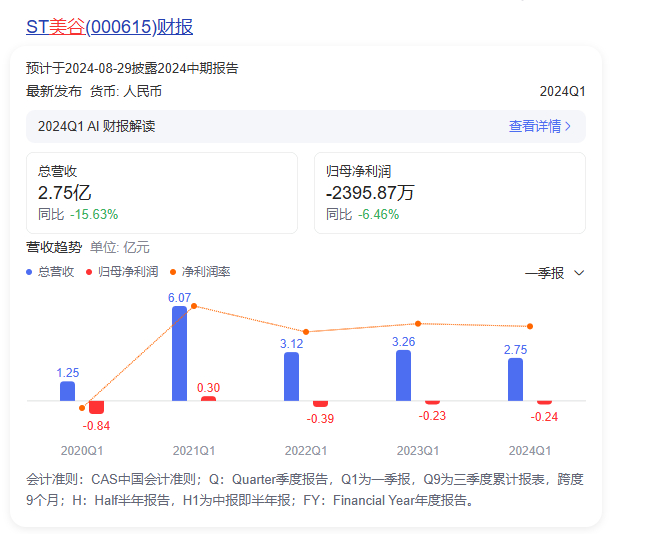 24年一季度,ST美谷扣非净利润为负的2635万,归属于上市公司股东的净利润为负的2395万。金环绿纤净利润为负的1816万,如果我们只按净利润来计算,剔除金环绿纤的财务数据后,一季度ST美谷应该是亏500万左右。