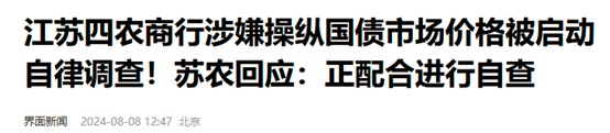 江苏的四家农商行因为涉嫌操纵国债市场价格,被要求做自律调查。