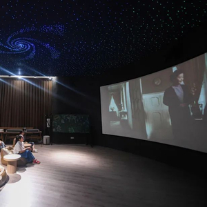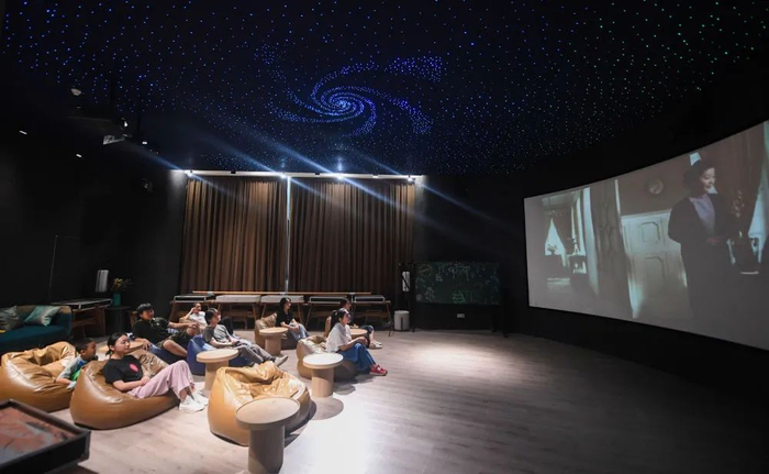 居民在位于浙江省杭州市富阳区银湖街道硅谷社区的“合之舍”书房的影视厅观看电影,该书房是银湖街道“15分钟品质文化生活圈”的示范点位(徐昱/摄)