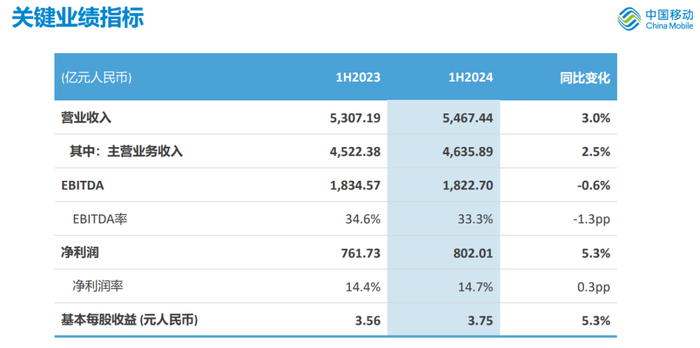 财报速递丨中国移动2024年中期业绩:数智化转型成效显著 盈利能力保持领先