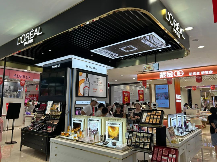 商场内,多个服装、箱包、女鞋品牌已贴出折扣1-3折的标识。在化妆品区,欧莱雅、欧珀莱、OLAY、自然堂、薇诺娜、毛戈平、卡姿兰、丸美等化妆品专柜均贴出了打折优惠的告示。外资品牌普遍的折扣是7.5折,而国货品牌有满减,以及最低的5折力度。CBO注意到,一款原价380元的某国货精华产品,现售价为179元,优惠低至5折以下。