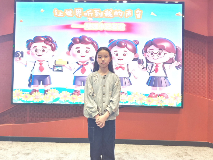 “很高兴通过广播认识大家。我的兴趣爱好是玩乐高、打架子鼓还有画画等,最近刚学会骑单车。虽然我不太热爱竞技体育类的运动,但是能静下心来也算是我的特长。关于未来和理想,我还想再多思考,当那个目标出现的时候,定全力以赴。”