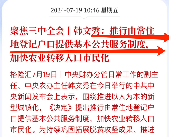 这个趋势,和三中全会上对户籍的放开,以及以居住地为主的居民权益新政,是相匹配的。