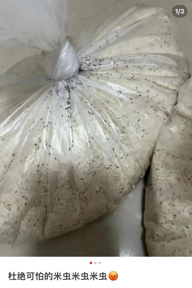 小永把这些米平铺到太阳下暴晒,可是吃下去又有些顾虑,在网络上求助网友,发现有不少人和小永一样,都遇到了类似的情况,许多广东的网友也发现,家中的米袋子里爬满了黑虫。