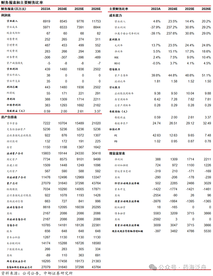 综上,我们预计公司 2024-2026 年收入端分别为85.45亿元、97.76亿元和117.53亿元,收入同比增速分别为24%、14%和20%,归母净利润预计2024年—2026年分别为12.93亿元、16.92亿元和21.82亿元,归母净利润同比增速分别为238%,31%和29%。